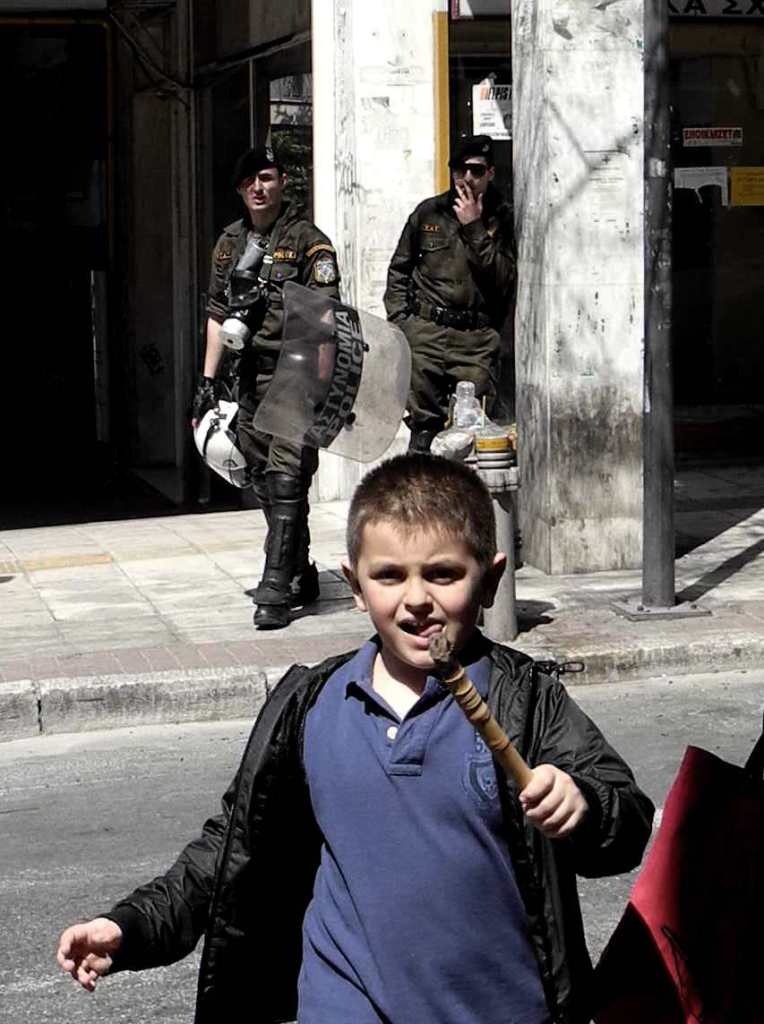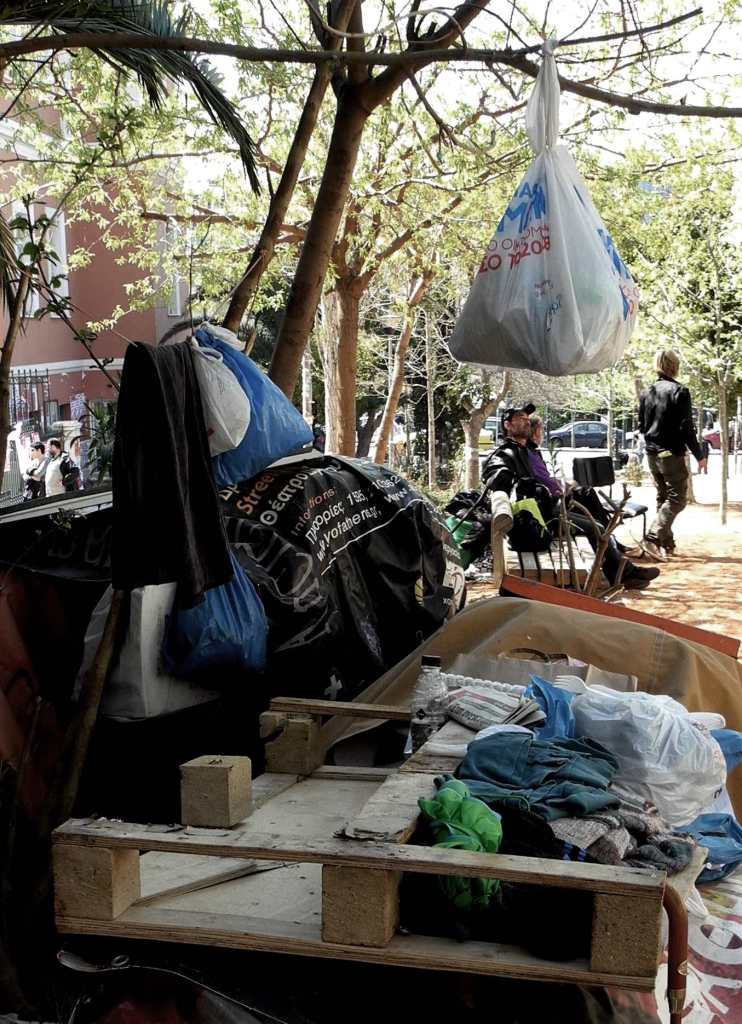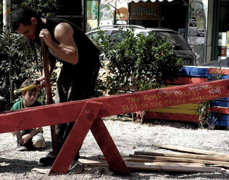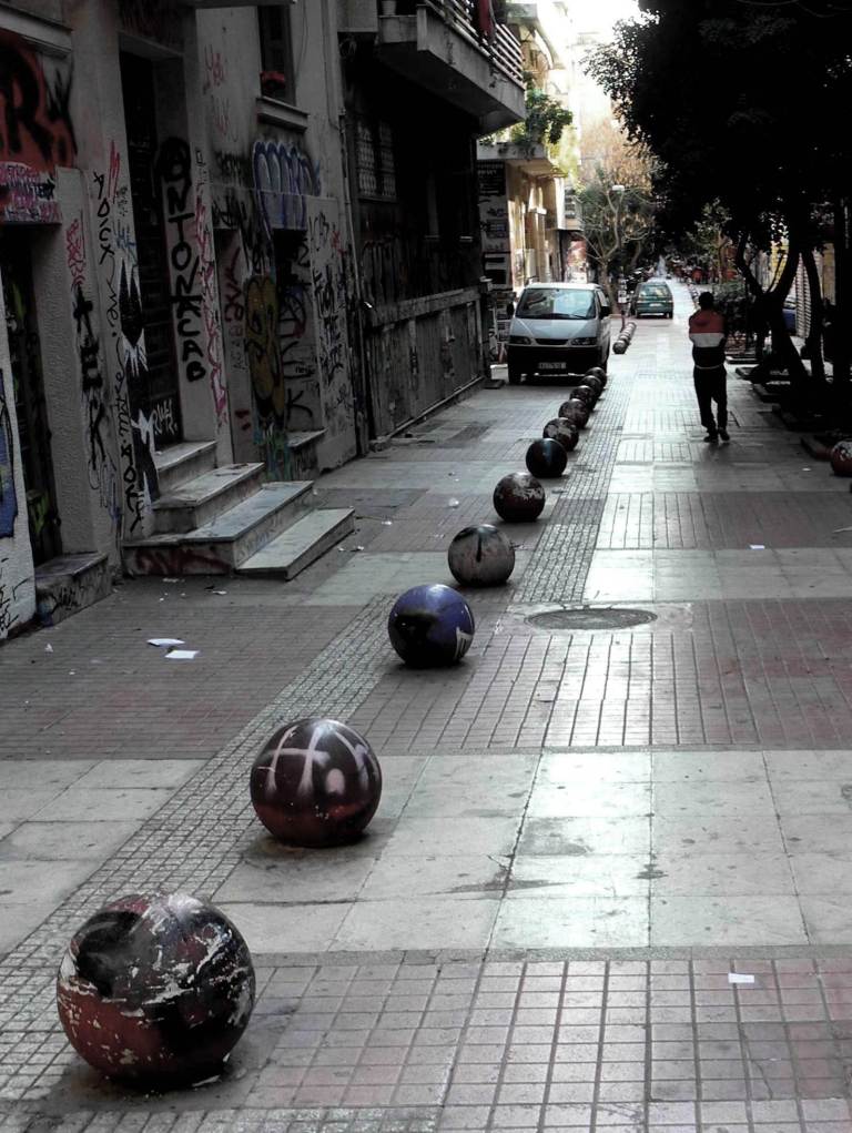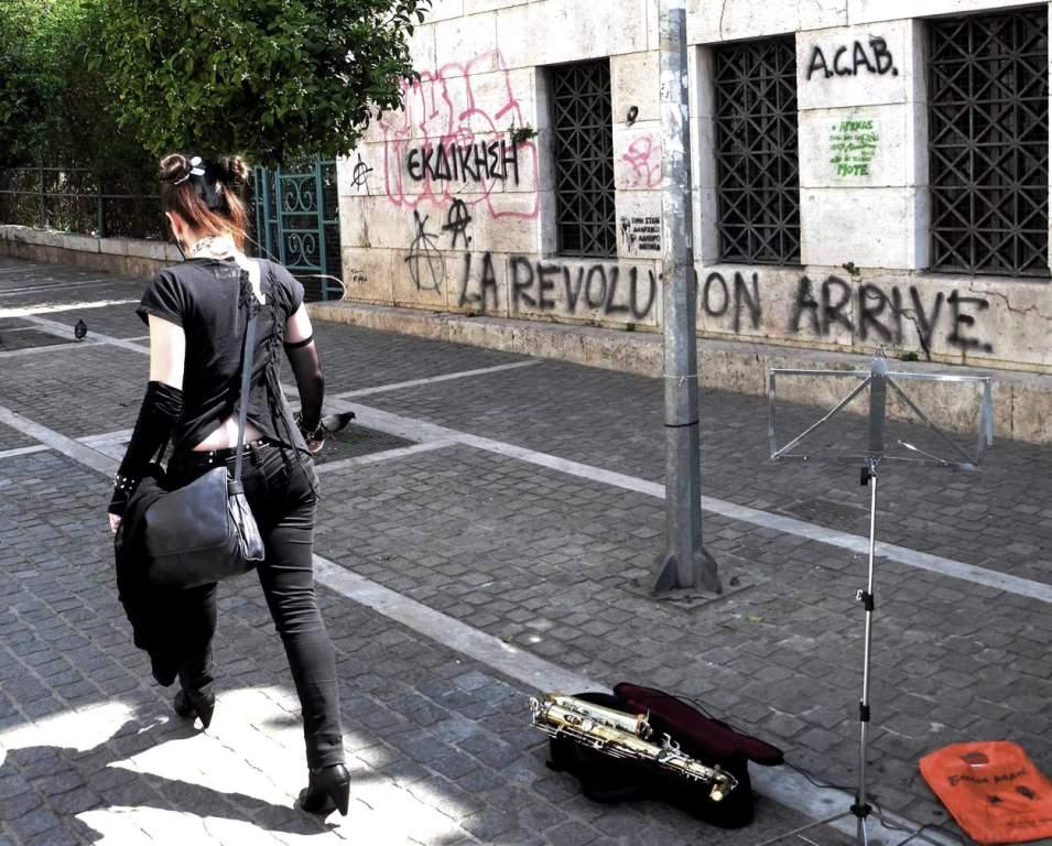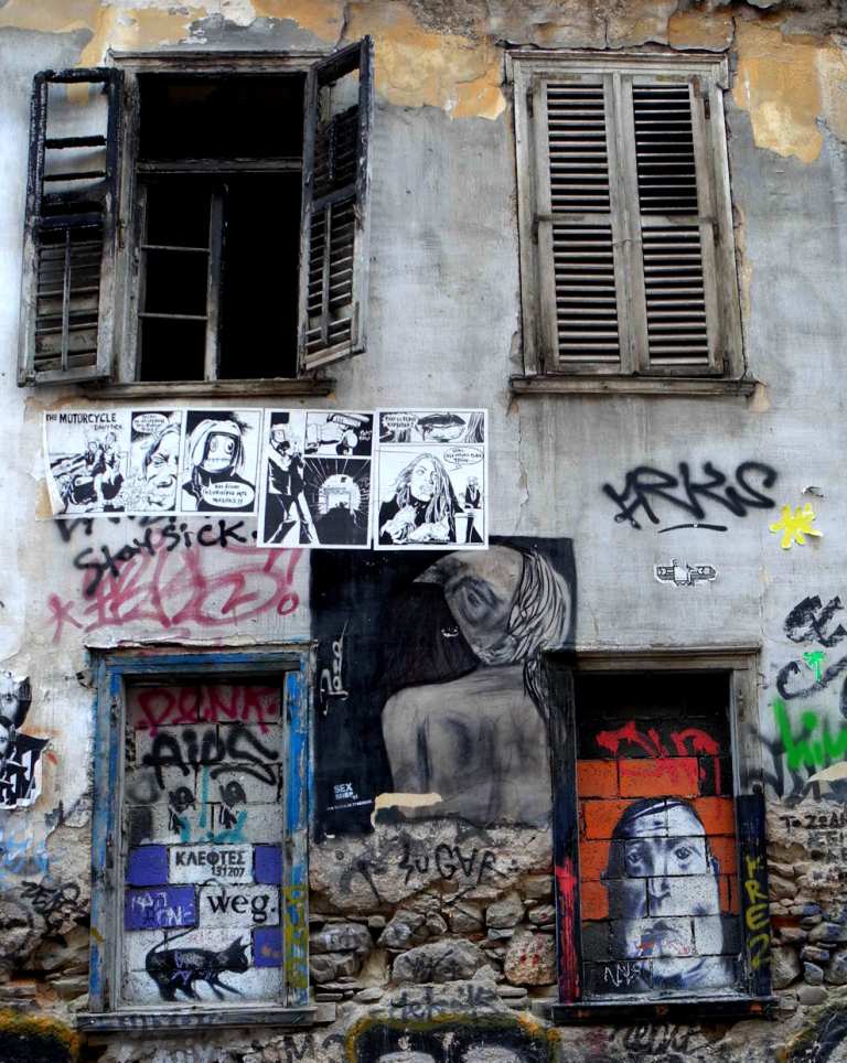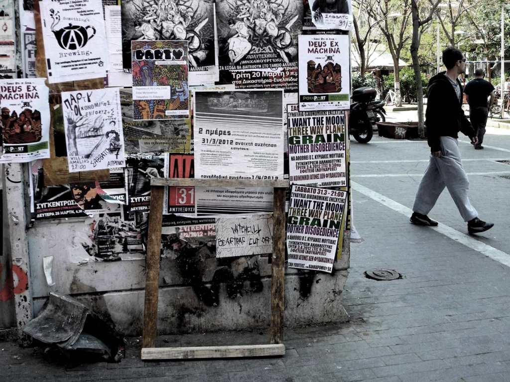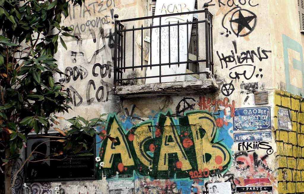 “Ad Exarchia la polizia non può entrare” mi racconta un ragazzo della zona. Exarchia, il quartiere “anarchico” di Atene, ha iniziato le sue battaglie nel ’73, contro la dittatura dei colonnelli. Exarchia è il quartiere delle università, il quartiere in cui nascono le rivolte, culturali e sociali. È il quartiere pronto alla guerra, contro i colonnelli negli anni ’70, contro la crisi oggi. Delle case abbandonate e delle case occupate. È il quartiere della musica, dei libri, dell’arte, dello studio, del pensiero. Exarchia è il quartiere degli “incappucciati”, delle molotov, degli scontri e, insieme, della gente stanca, propositiva, che costruisce, ricostruisce. La polizia rimane alle porte di Exarchia. “Ad Exarchia la polizia non può entrare”.