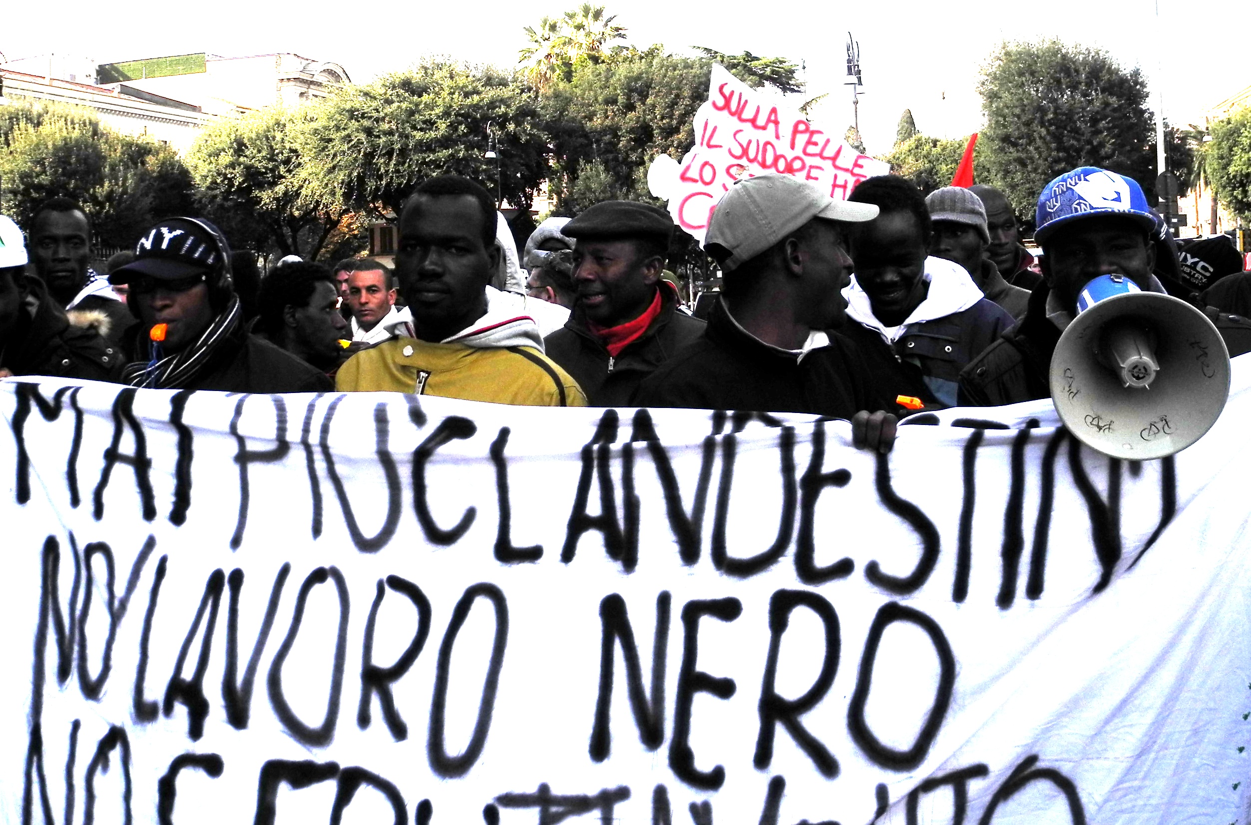 “Siamo i lavoratori che ogni mattina si alzano alle 5 e vanno a raccogliere nei campi il vostro cibo. Viviamo nascosti in luoghi che chiamare casa è un insulto. Nostra compagna di vita è la paura. Paura dei caporali, che ogni mattina ci vengono a prendere e decidono chi lavora e chi no. Paura del lavoro perché dopo 10 ore se ci va bene ci troviamo in tasca 15 o 20 euro e se ci va male una pistola puntata. Paura dei padroni che ci trattano come bestie. Paura delle forze dell’ordine perché non abbiamo documenti. Paura della paura, perché siamo invisibili. Perché non possiamo denunciare i nostri sfruttatori. Se camminiamo per strada dobbiamo stare attenti a chi ci fa del male e a chi dovrebbe tutelarci. Siamo nemici per tutti. Siamo gli uomini e le donne che lavorano nelle grandi città, immigrati sotto il costante ricatto del permesso di soggiorno. Paghiamo la crisi due volte, la prima come lavoratori e lavoratrici perdendo il posto e la seconda come immigrati, perché perdendo il lavoro perdiamo i nostri diritti. Siamo quelli che cadono nei cantieri e vengono buttati nella spazzatura, siamo quelle che curano i vostri vecchi e puliscono i vostri uffici”. Lettera degli immigrati di Rosarno indirizzata ad alcuni ministri.
